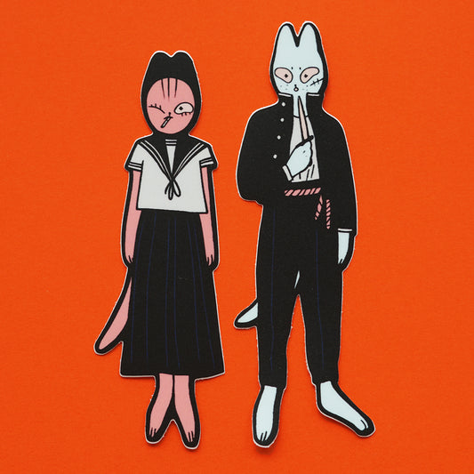 KITTY AND PUP WITH A KNIFE stickers by XUHRegular price From $3.00 USDRegular priceUnit price per-