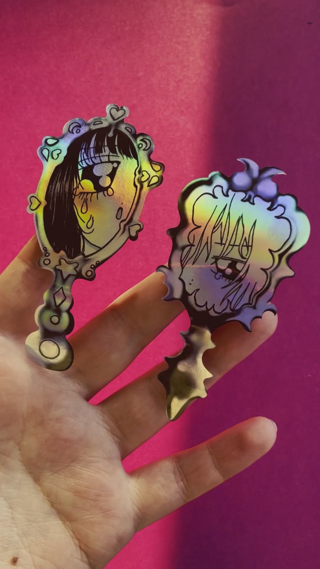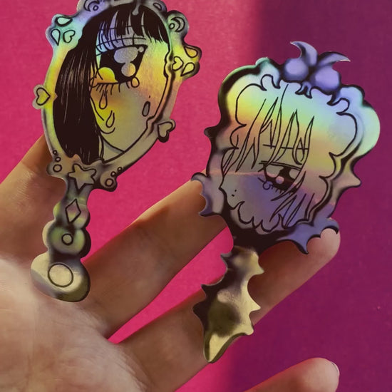 sticker set of two mirrors with a holographic effect, whose reflection is it,hmmm